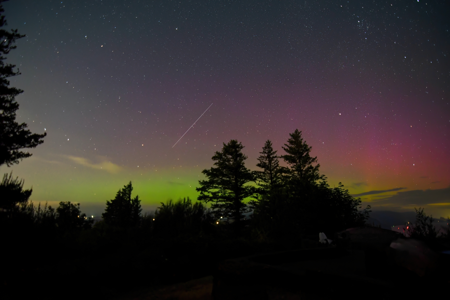 When we arrived there were maybe 15 cars or so in the lot, with small groups of people clustered together on blankets watching the skies for shooting stars. No one seemed to be interested in the Northern Lights. Just as we got parked and stepped out of the truck, a really big meteor shot across the sky, leaving a smoke trail behind it! We figured that was a good omen, so I wandered over to an area with a decent view to the north. I couldn’t see anything with my naked eye, but having spoken to lots of folks who had seen them in May, I knew that often you could not actually see the dancing colors in the sky with your naked eye like you can further north. But cameras are much more sensitive to spectrums of light that the human eye cannot see, so I snapped a few test shots with my phone. Low and behold I could see a little bit of green along the horizon!